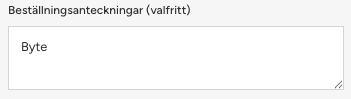 2. Skriv ”byte” i fältet som heter Beställningsanteckningar (valfritt) i kassan. Se bilden nedan för hur du ska skriva.